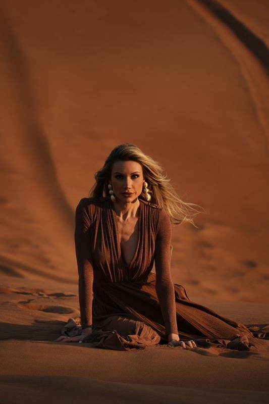 Fotografada em meio às dunas do Sharjah Desert, a capa traduz perfeitamente a essência de sua trajetória: força, sofisticação e uma presença que se impõe de forma natural em qualquer cenário global.